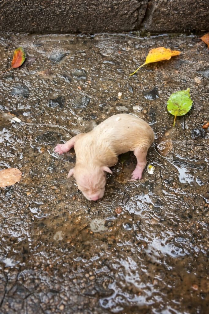 When the rescuer picked him up, he was limp and exhausted — a life that had barely begun already fighting to continue.