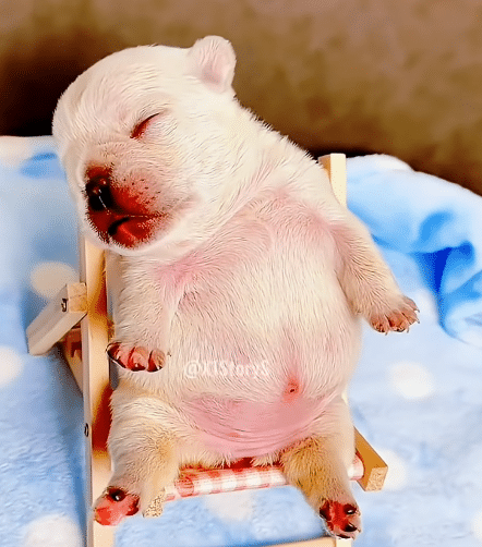 The video captures charming moments: the puppy dressed in tiny sweaters, miniature outfits, even small shoes that seem almost too big for his paws. He naps peacefully on soft cushions and little chairs made just for him.