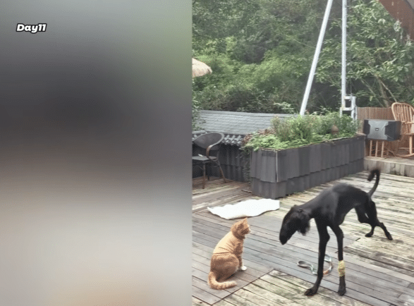 He began interacting with the other dogs and cats in the house. At first, cautiously. Then curiously.
