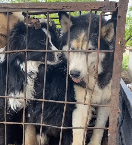 When the rescuers approached, the living dogs pushed their faces toward the bars. Eyes wide. Silent. Watching.