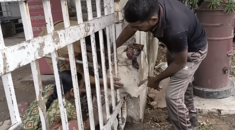 Video: Wedged Between Gate Bars — Watch the Careful Rescue That Set Him Free