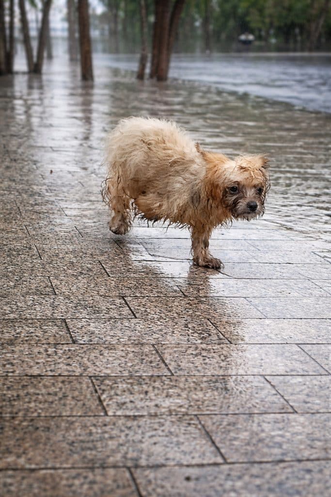 A young man’s friend spotted a small dog wandering near the bushes, soaked to the bone. Her fur was tangled and filthy, her tiny body trembling. One front leg dragged awkwardly — she limped with every step.