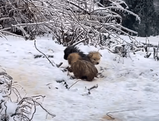 Hidden beneath layers of snow were four tiny puppies — no more than two months old. Their thin bodies were soaked. Their fur clung to their skin. They trembled violently against the freezing ground.