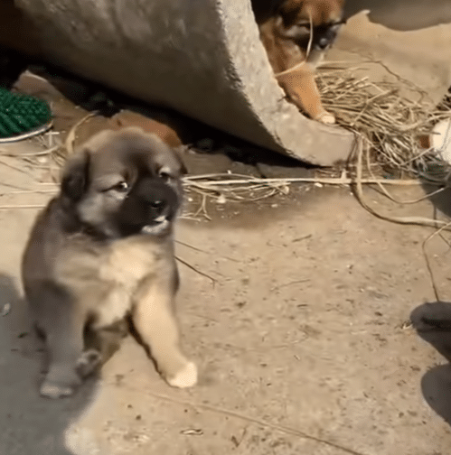 The inside was lined with dry straw and old clothing to trap heat. The circular structure shielded the puppies from wind and snow, turning a discarded object into a life-saving refuge.