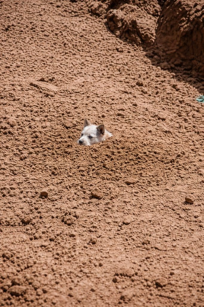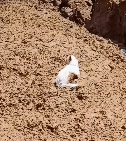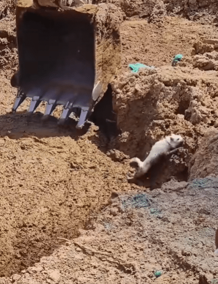 At a construction site filled with heavy machinery and wet ground, someone noticed movement in the mud.