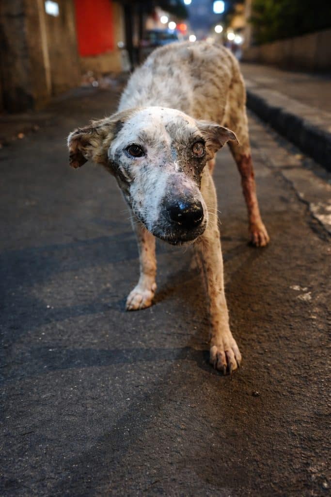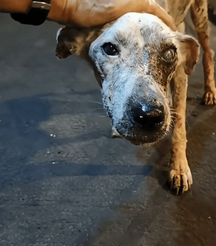 Under the dim glow of streetlights, a small figure moved slowly along the roadside — not searching, not barking, not even begging. Just walking.