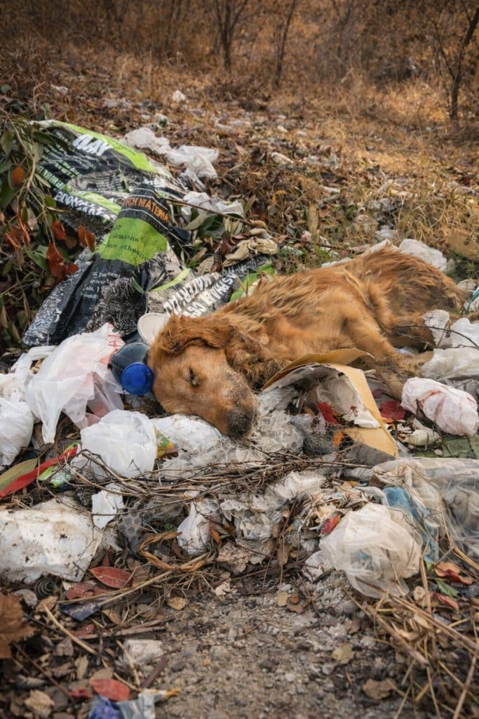 On a cold day near an abandoned dumping ground, an elderly Golden Retriever lay motionless among discarded trash. His once-golden coat was dull and thin. His body, fragile and worn, trembled with exhaustion.