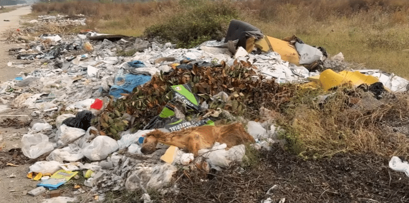 Someone passing by to throw away garbage noticed something unusual in the pile — not debris, but life.