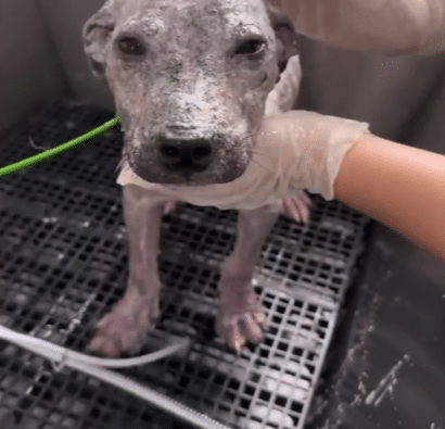 The veterinary team examined his fragile skin. It was thickened, damaged, and inflamed across his back. His tiny paws were injured between the toes. Parasites covered parts of his body, draining what little strength he had left.