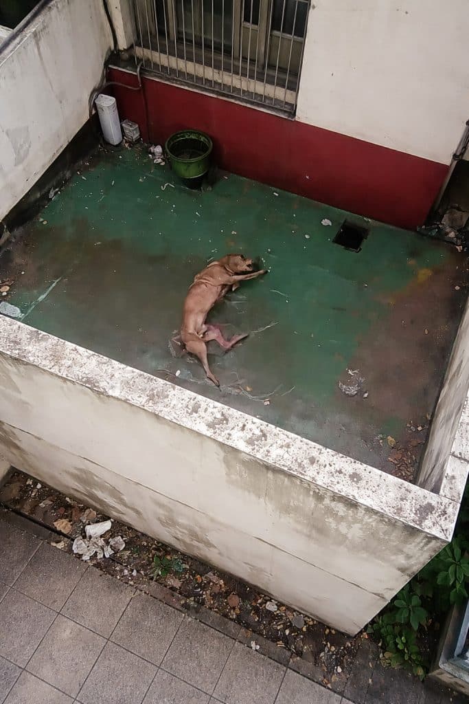 A neighbor sent a photo late one evening. In it, a dog lay collapsed on wet concrete, his body so thin it barely seemed real. His limbs were still. His head rested against the ground as if even lifting it required strength he no longer had.