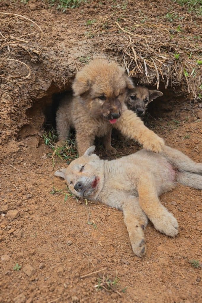 By the end of the video, the two puppies appeared calmer. Not fully recovered — but steadier. Their breathing more regular. Their bodies supported.