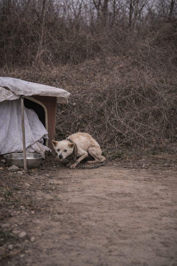 Leah had been left behind in an open field, still tied to a short chain, long after the crops were gone. With no shelter from the blazing summer sun or the freezing winds of winter, she remained where she had always been — guarding land that no longer needed guarding.