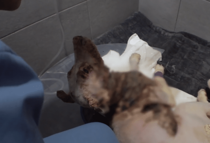 His condition required immediate attention, but also patience. His body was too weak for rushed treatment. Veterinarians began stabilizing him slowly — providing fluids, medication, and carefully cleaning the irritated areas of his skin.