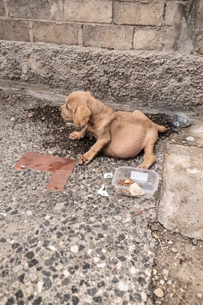 Even in his weakened state, Barsik showed something remarkable. Whenever food was placed nearby, he tried to reach it — stretching forward with the little strength he had left.