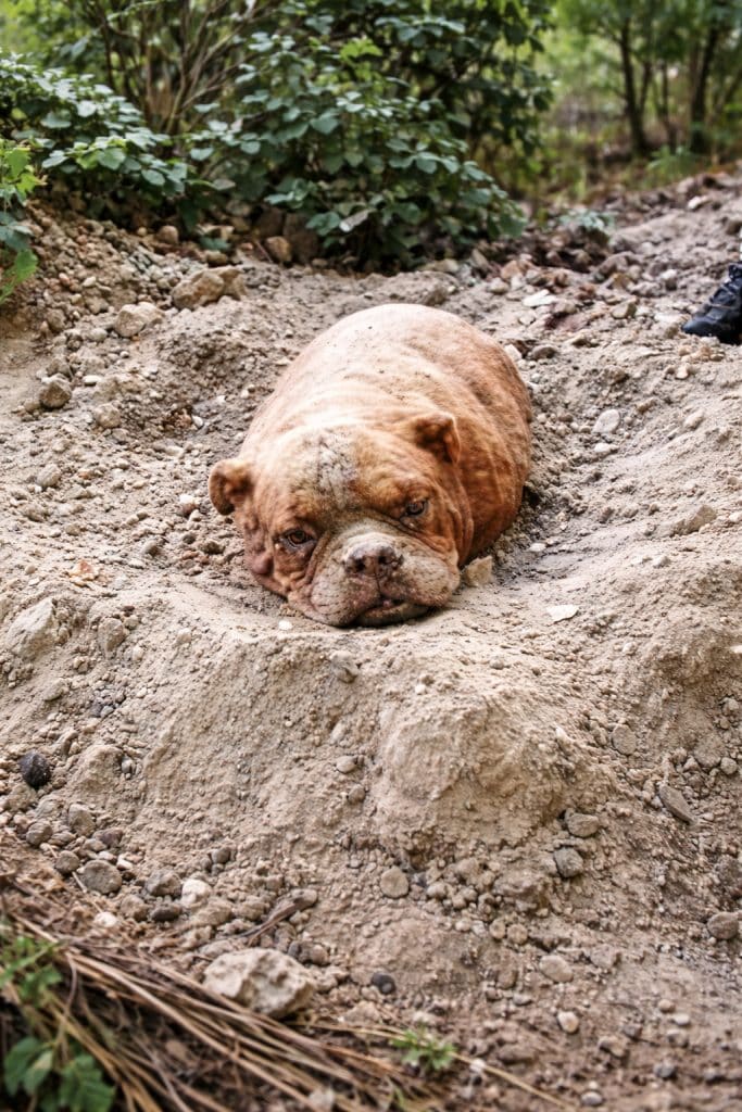 His small body looked thin beneath his patchy coat. His eyes were wide but dull with exhaustion. Instead of running away like most street dogs, he simply watched.