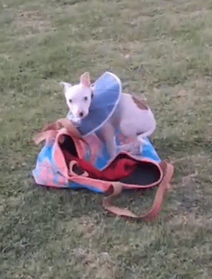 During recovery, he wore a protective collar to prevent irritation while the area healed.
