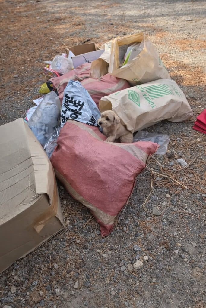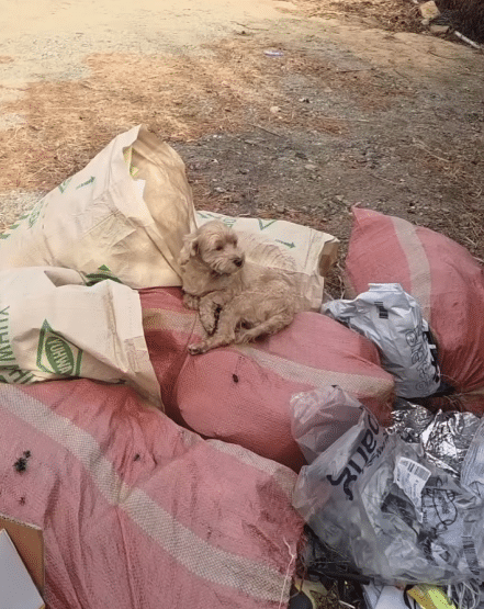 Local residents later explained that the dog had been there for about three days. During that time, he stayed close to the trash bags, rarely moving far.