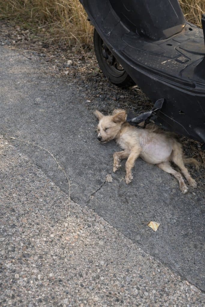 The dog didn’t resist when approached.