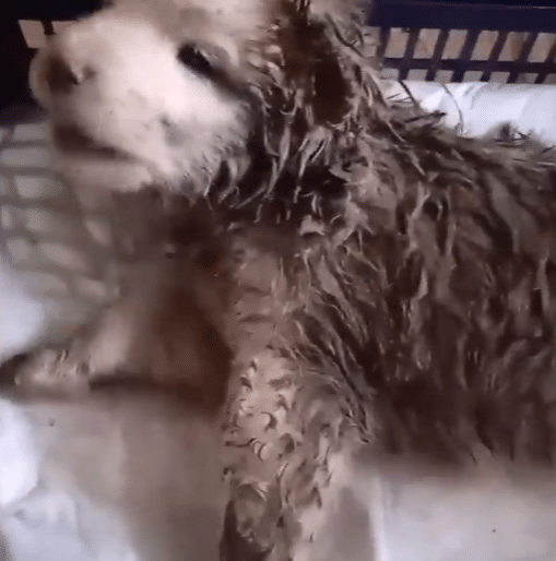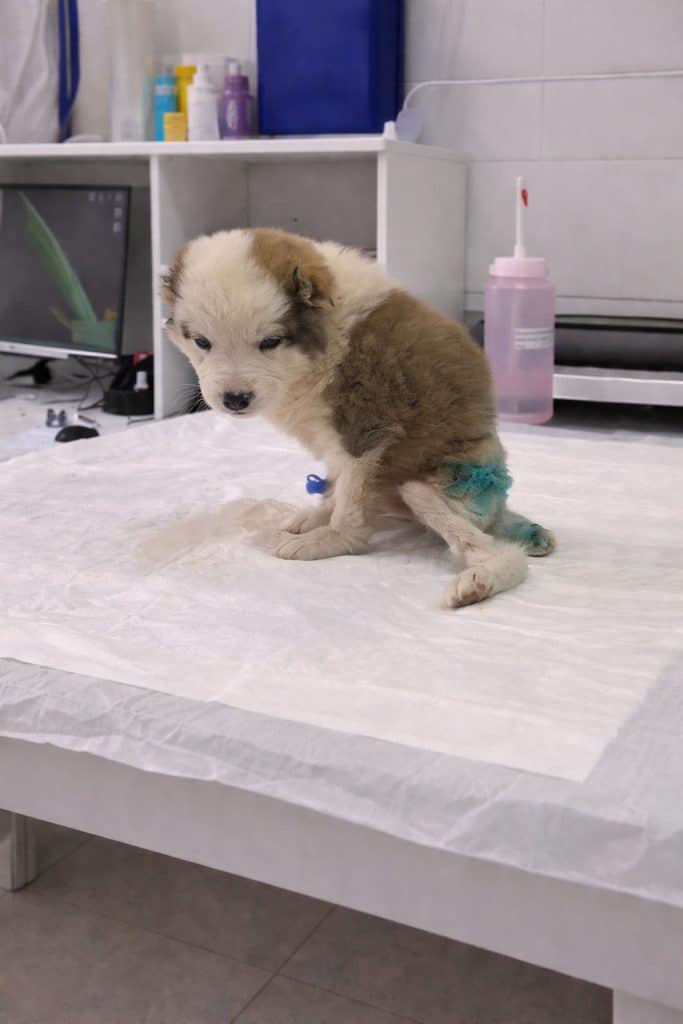 At the clinic, volunteers quickly assessed the dog’s condition.