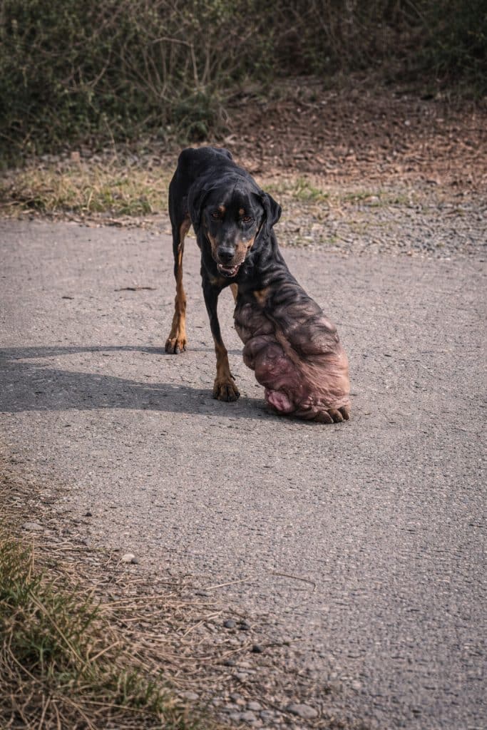His family cared about him, but they simply did not have the resources for veterinary treatment. For months, he carried the swelling in his leg without medical care, quietly enduring the pain.