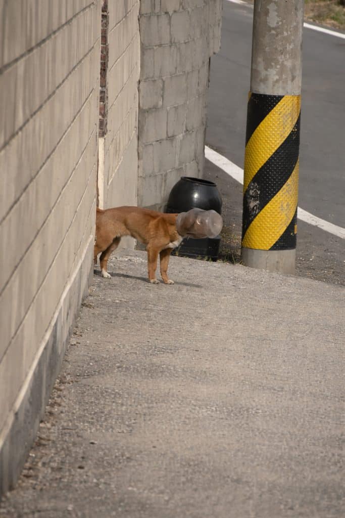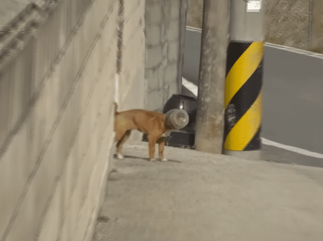 The dog had likely been digging through garbage, trying to find scraps of food, when his head became trapped inside the container.