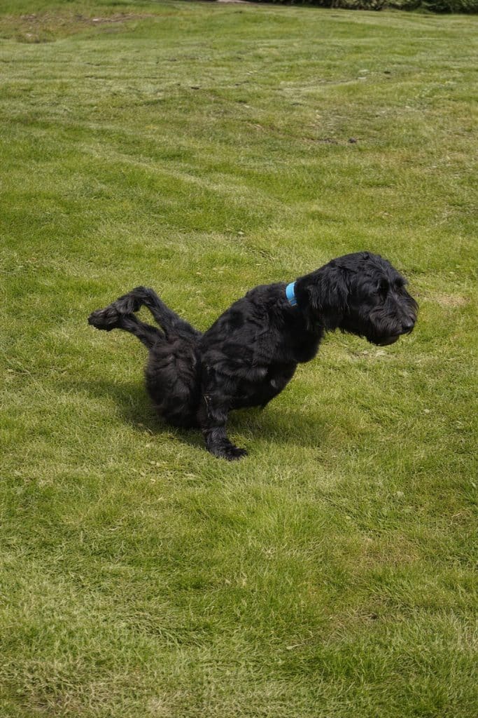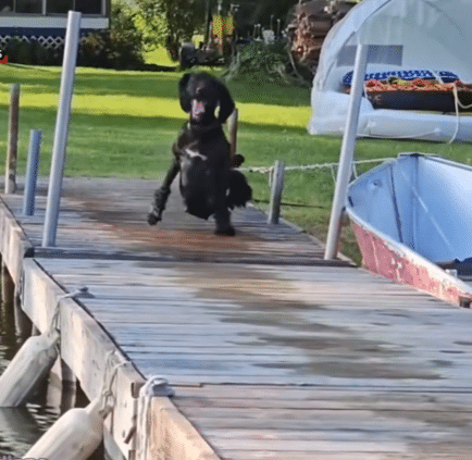 He races across grass using the strength of his front legs. He plays happily with other dogs. His wheelchair gives him speed and independence.