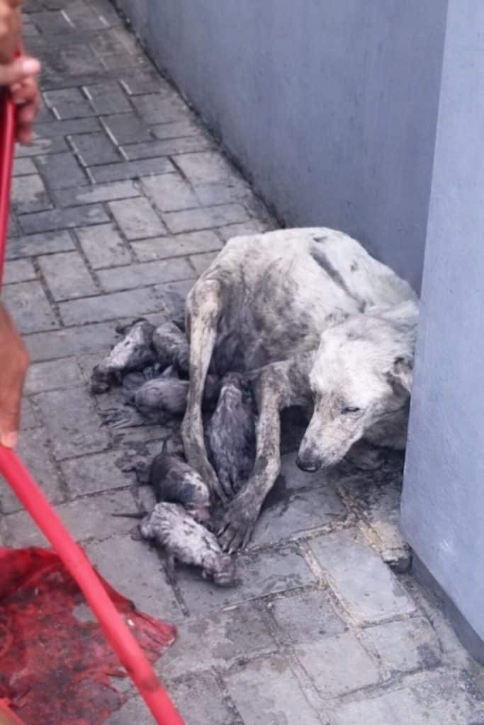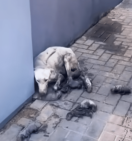 Yet that was the reality for a gentle stray dog who had just given birth to a tiny litter of puppies. Instead of a safe home, warm blankets, and quiet protection, she and her newborns were left outside to survive however they could.