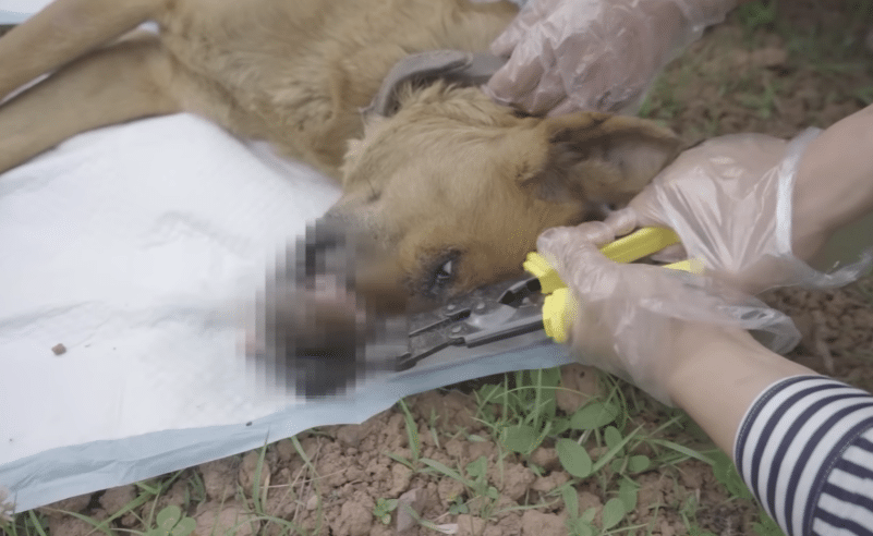 Video: The Moment a Trapped Dog Was Finally Freed From the Wire Around His Mouth