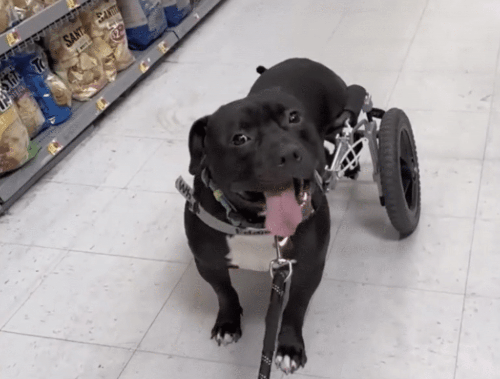Three weeks after surgery, Lucky received something that would change his daily life — a custom mobility cart designed to support his back legs.