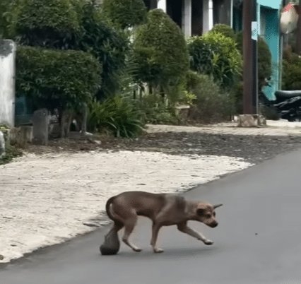 Attached to her hind leg was a massive swelling that hung heavily with every step she took. The weight made it difficult for her to walk, and each movement looked slow and uncomfortable.