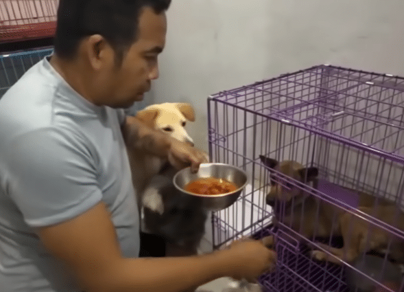 Nearby, the rescuer sat quietly, offering food and gentle reassurance.