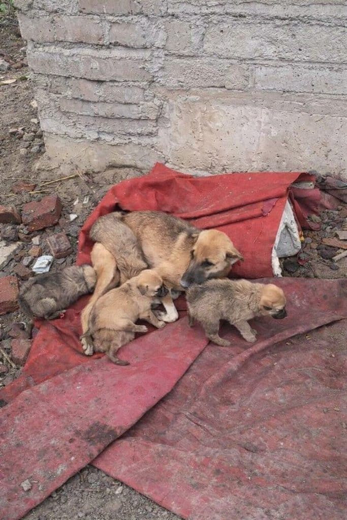 The mother dog eventually returned to the only shelter she could find — a narrow corner beside an old wall.