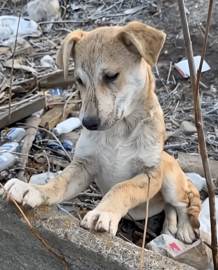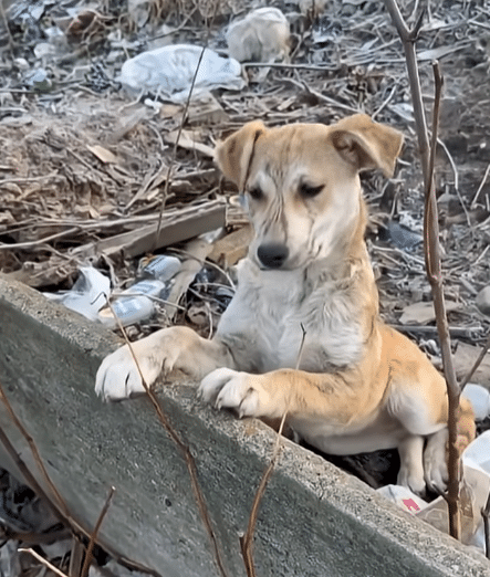 According to the video, the dog had been abandoned in this very spot. Without anyone to look after him, he survived however he could — among the discarded things people left behind.