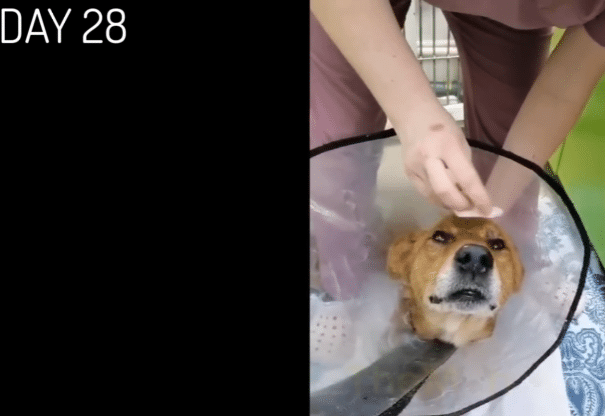 By Day 20, Jason still could not stand. He could only pull himself forward using his front legs while the back legs remained weak and unresponsive.