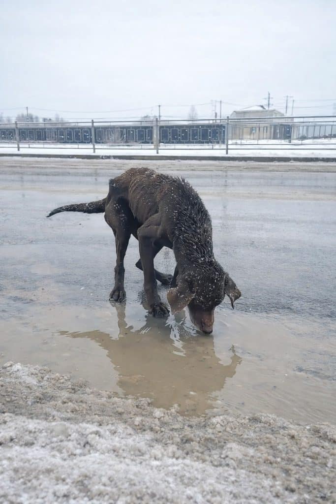 Because of that choice, the dog who once drank icy water from a roadside puddle now sleeps safely indoors, surrounded by love.