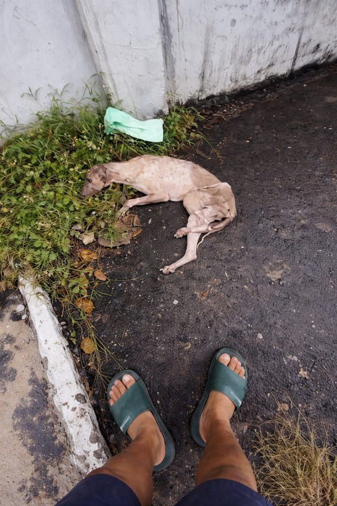 The dog remained there, frightened and suffering, waiting for someone to act.