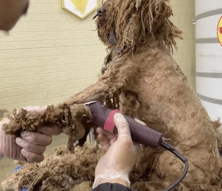 The thick mats of fur had grown over a long period of neglect, trapping dirt, parasites, and moisture close to her skin. Removing them required patience and extreme care to avoid hurting her already sensitive skin.