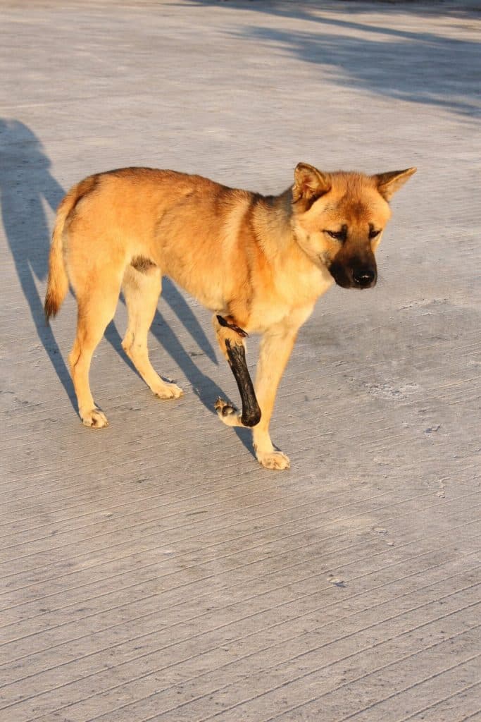The injury had most likely been caused by an animal trap. As a stray dog, he had never received treatment, which meant he had endured the injury alone for a long time.