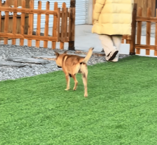 The dog was taken outside for a short walk, still adjusting to his new balance. At first, his steps were a little uncertain, but each day he grew steadier.