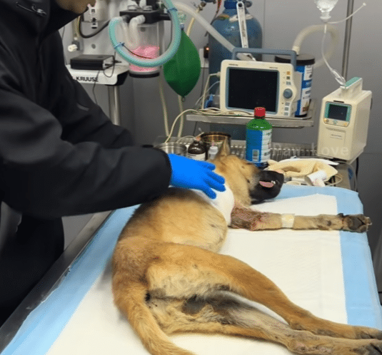 The operation went smoothly, and the veterinary team carefully removed the damaged limb to prevent further complications. Throughout the process, rescuers stayed close by, hoping the dog would feel safe when he woke up.