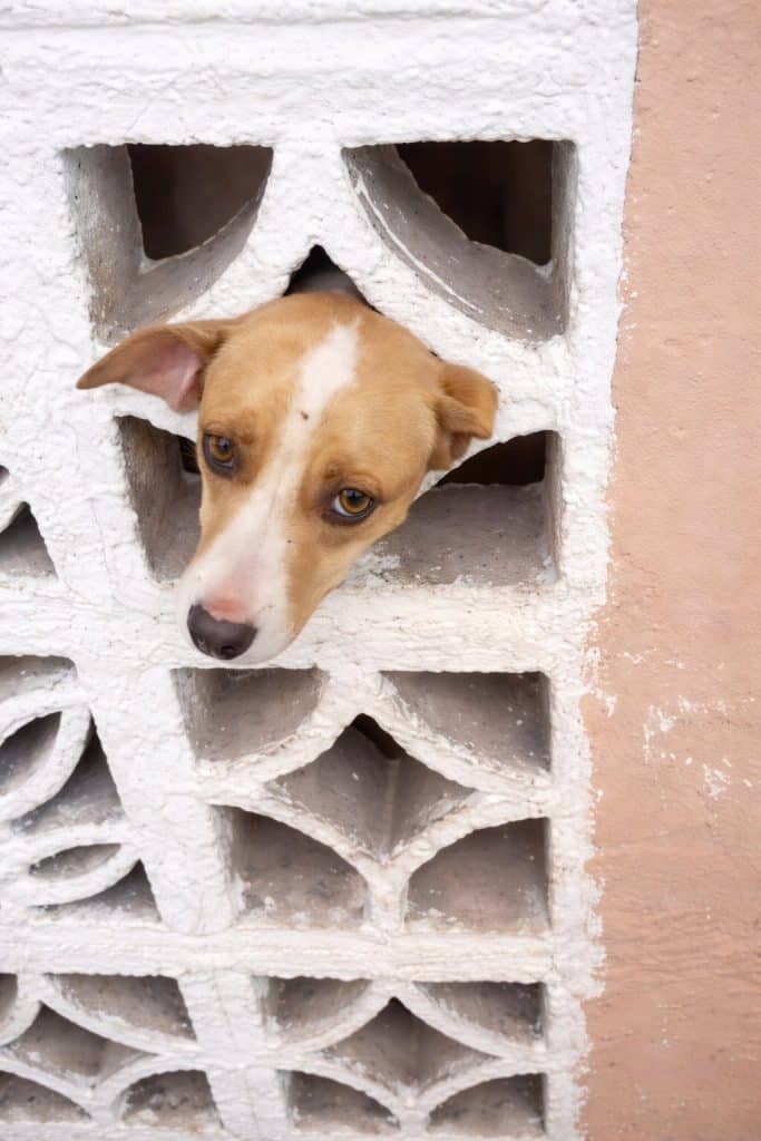 One day, while exploring near a concrete wall, a dog noticed several small openings between the blocks.