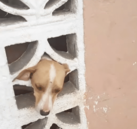 Video: Curious Dog Gets Head Stuck in Concrete Wall — A Careful Rescue Saves Him