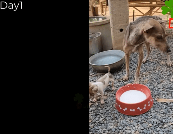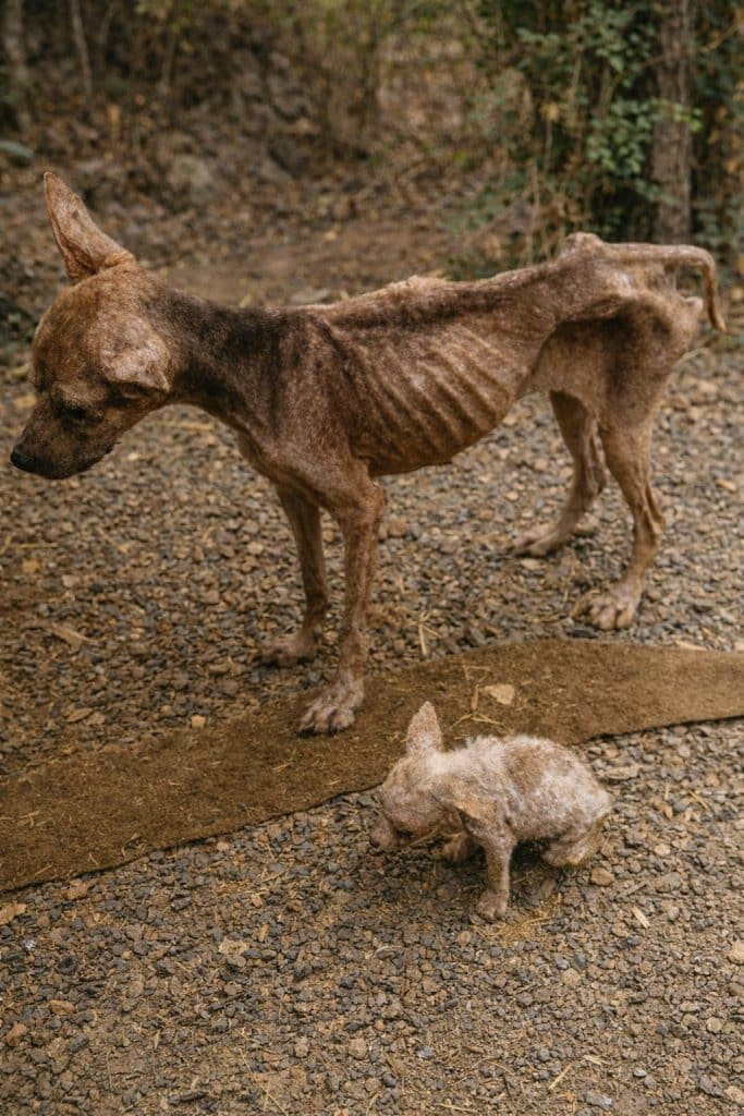 The mother dog, later named Jackfruit, was painfully thin. Her body was little more than skin stretched over fragile bones. Hunger had clearly been her constant companion for a long time.