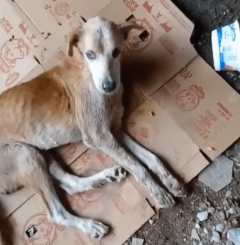 A kind-hearted young woman discovered the injured dog lying in the empty yard. The sight was heartbreaking. Derby’s body was painfully thin, his ribs clearly visible beneath his wet fur. Flies circled around him, and he looked completely exhausted.