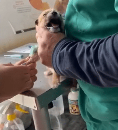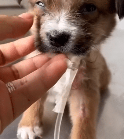 The tiny puppy who once lay helpless on the ground was now surrounded by people determined to care for her.