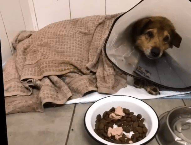 Even while injured and terrified, the old dog did not show aggression. Instead, he simply lay quietly, unable to stand or even urinate because of the damage to his hips.