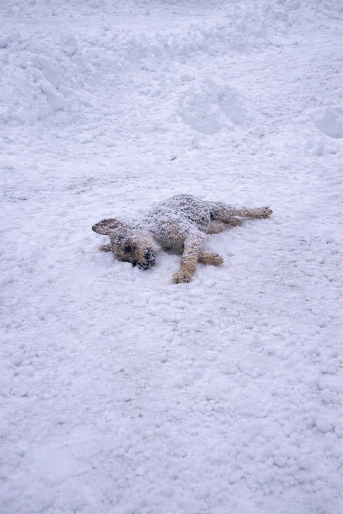 The rescuers carefully wrapped the puppy in a blanket and rushed him to a veterinary clinic. His body was freezing, and he could barely react to touch.