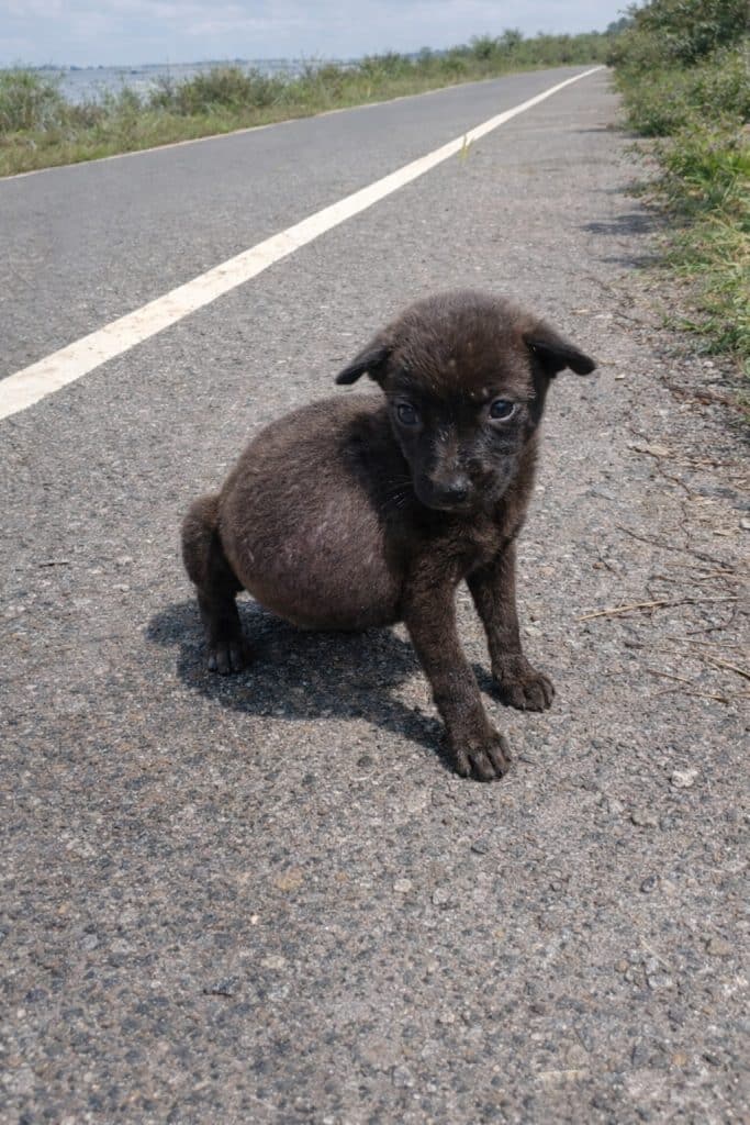 With nothing to eat, the starving puppy had begun swallowing small rocks from the ground, desperately trying to quiet the pain in her empty stomach.