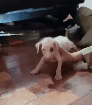 When she crouched down to look underneath, she realized something surprising — a tiny puppy was trapped inside the lower section of the car. No one knew how long the little dog had been there, and the car didn’t even belong to someone who owned a pet.