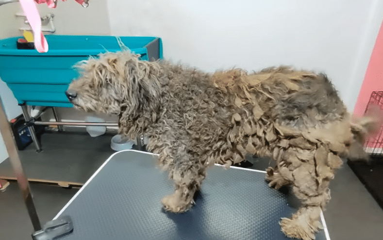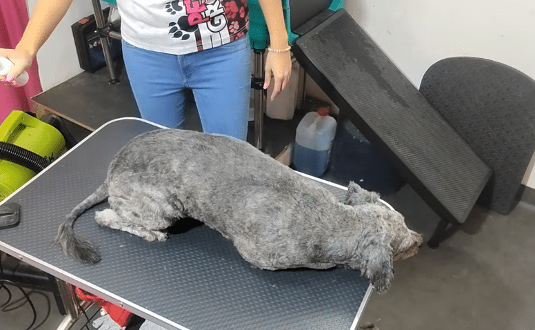 The groomer gently brought the dog into the salon and began the long process of shaving away the thick mats. It had to be done slowly and carefully, allowing the clipper to pass between the skin and the tangled fur without causing injury.